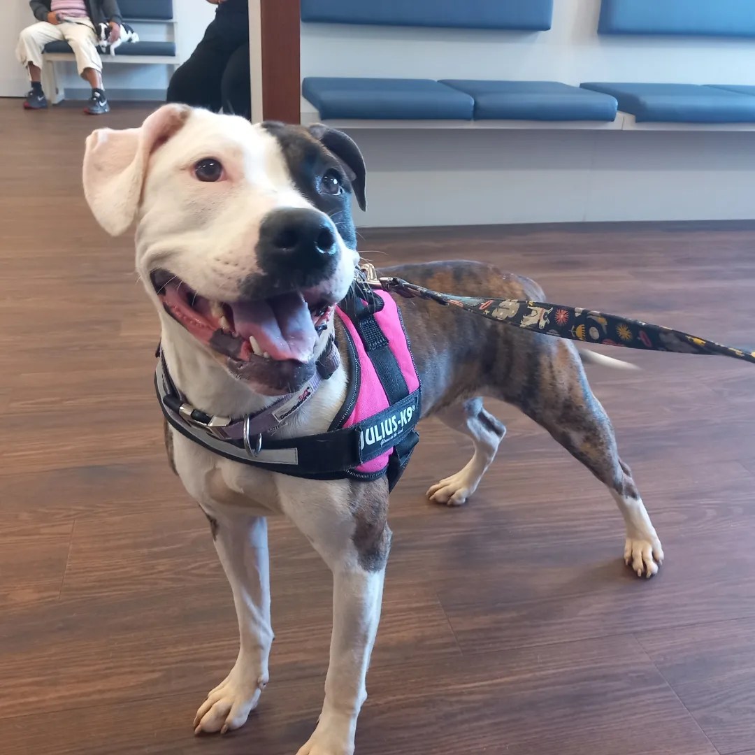 Wilma is such a wonderful lady. She can be a bit of a livewire but is always so happy and excited to see everybody. Her tail is going all the time. She loves cuddles and to lick you to death. She may be able to live with another dog but will take time to get used to them and a calm dog. Children 10+